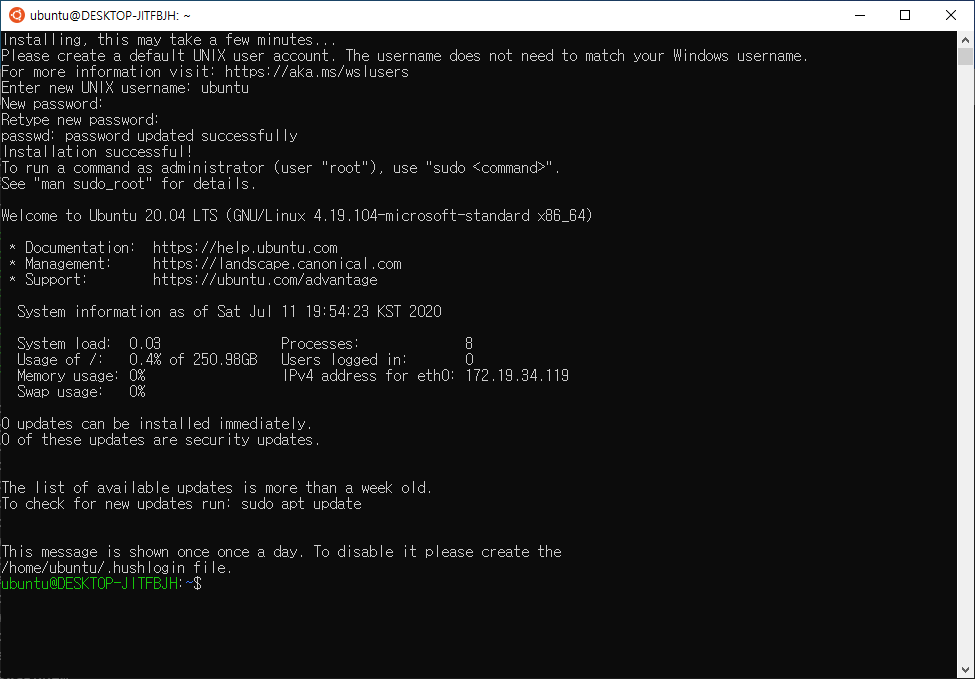 ubuntu@DESKTOP-JITFBJH:/mnt/c/Users/kim$반응형