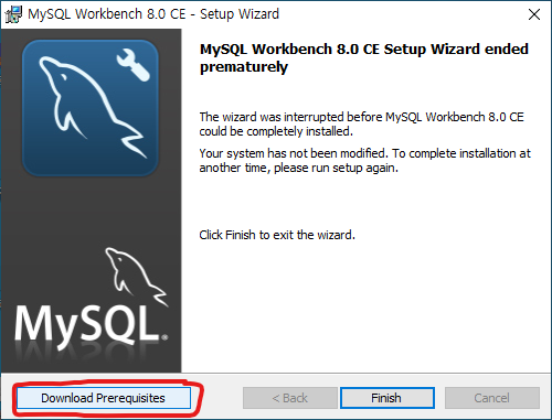 - 클릭이후 화면 전환되며 페이지 중간 정도에 MySQL Workbench Windows Prerequisites 항목이 있습니다.
