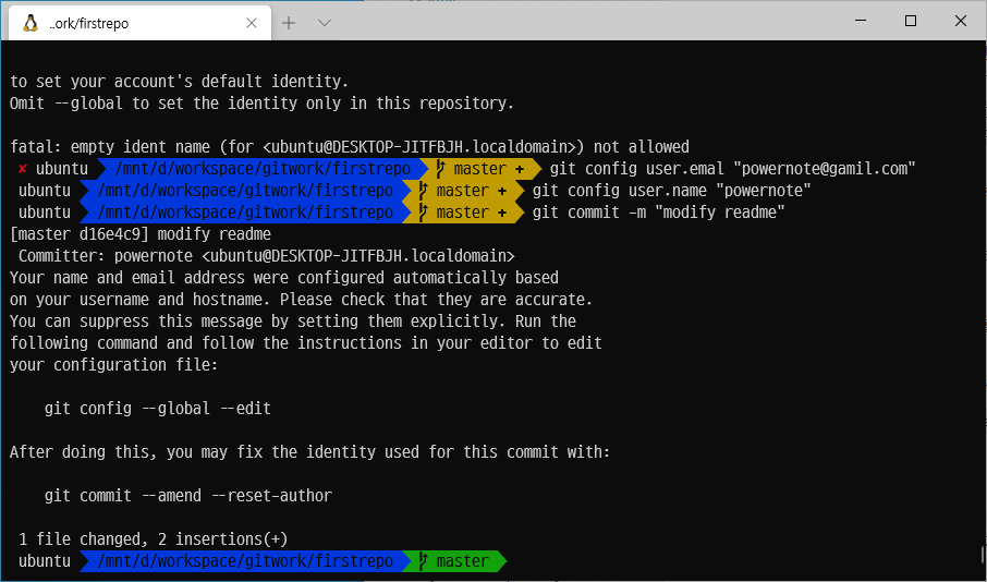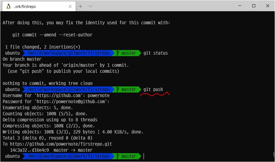 * 다시한번 git commit 명령 실행. 하여 성공함.