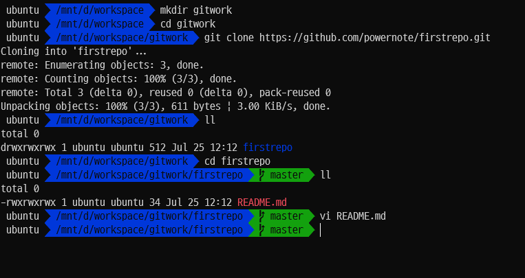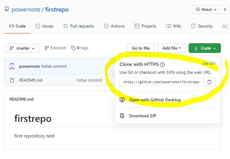* Repository 생성시 만들어진 README.md 파일이 잘 내려 받아졌다.