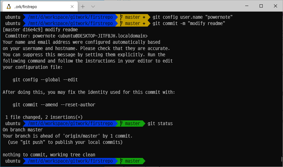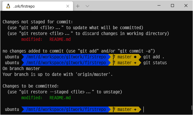 잘 반영됐는지 다시한번 git status 명령을 통해 확인한다.