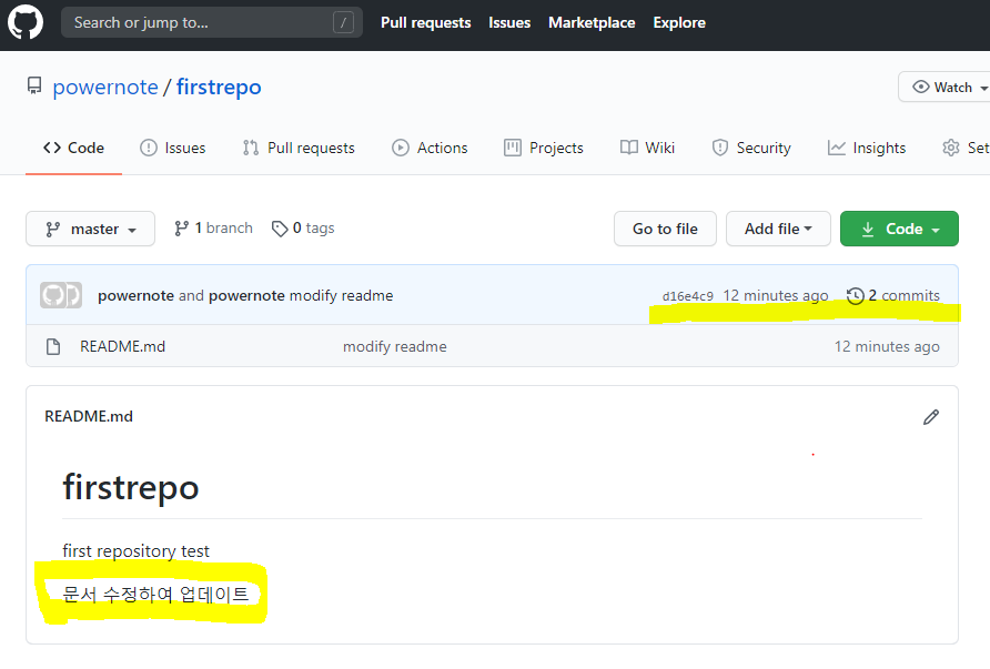 이제 gitHub 사이트 가서 작업사항 반영에 대해 확인 한다.