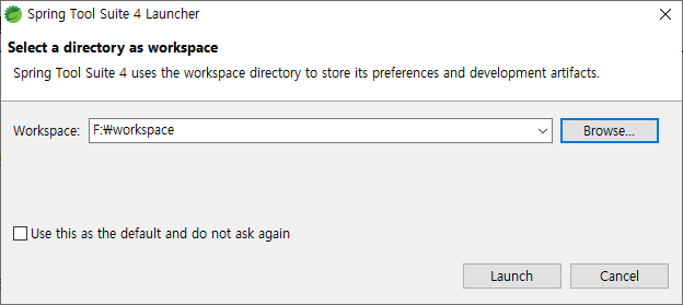 workspace를 사용할 폴더를 선택 ( 미리 탐색기등에서 생성해 놓는것이 좋다 .)