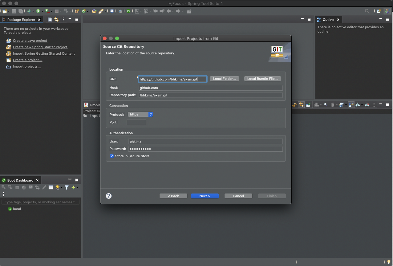 Spring Tool Suite4 에서 github 연동하여 import 하는 방법
