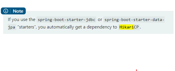 - springboot 문서를 보면 아래와 같다. spring-boot-starter-jdbc, spring-boot-starter-data-jpa를 사용한다면 HikariCP에 의존한다고 되어있다. - 라이브러리는 가벼우며, 빠르고 고성능이란다.