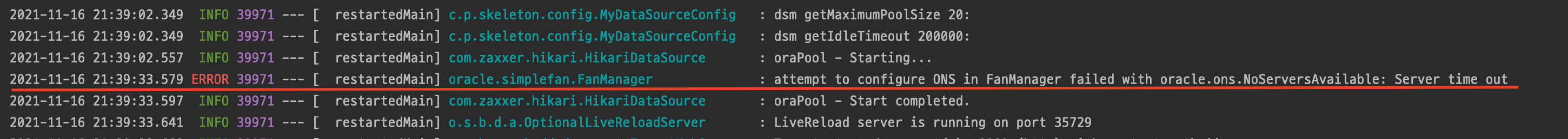 - spring boot 실행하니.. connection 중 ERROR 가 발생함.
