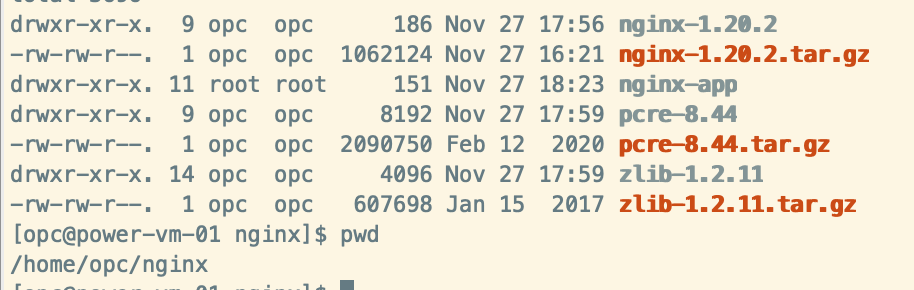 sudo make sudo make install- 최종결과물이 /home/opc/nginx/nginx-app 에 설치된것을 확인 할 수 있다.