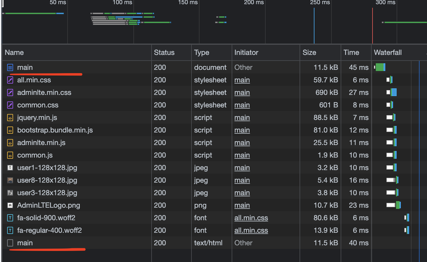 처음 요청(main) 처리 이후 또다시 호출 (main) 하는게 아닌가?. 실질적으로 WAS controller를 두번씩 탄다.