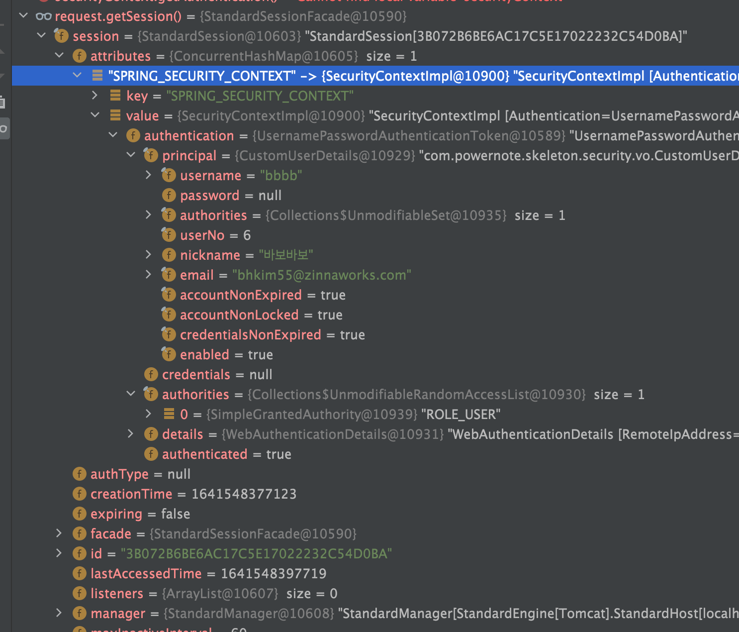- Session 개체에서는 security 관련 security_context 를 Key = "SPRING_SECURITY_CONTEXT" 에 담고 있다.