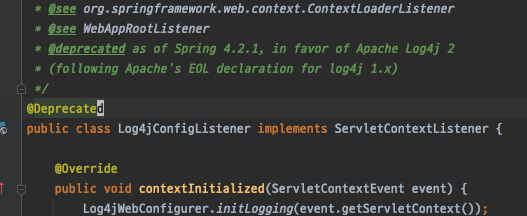 또한 spring 4.2.1 에서는 log4j 1.x가 EOL 로 Deprecated Class로 관리 되고 있다.