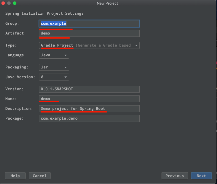Grop, Artifact 를 적으면 패키지 명이 자동 변경됩니다.